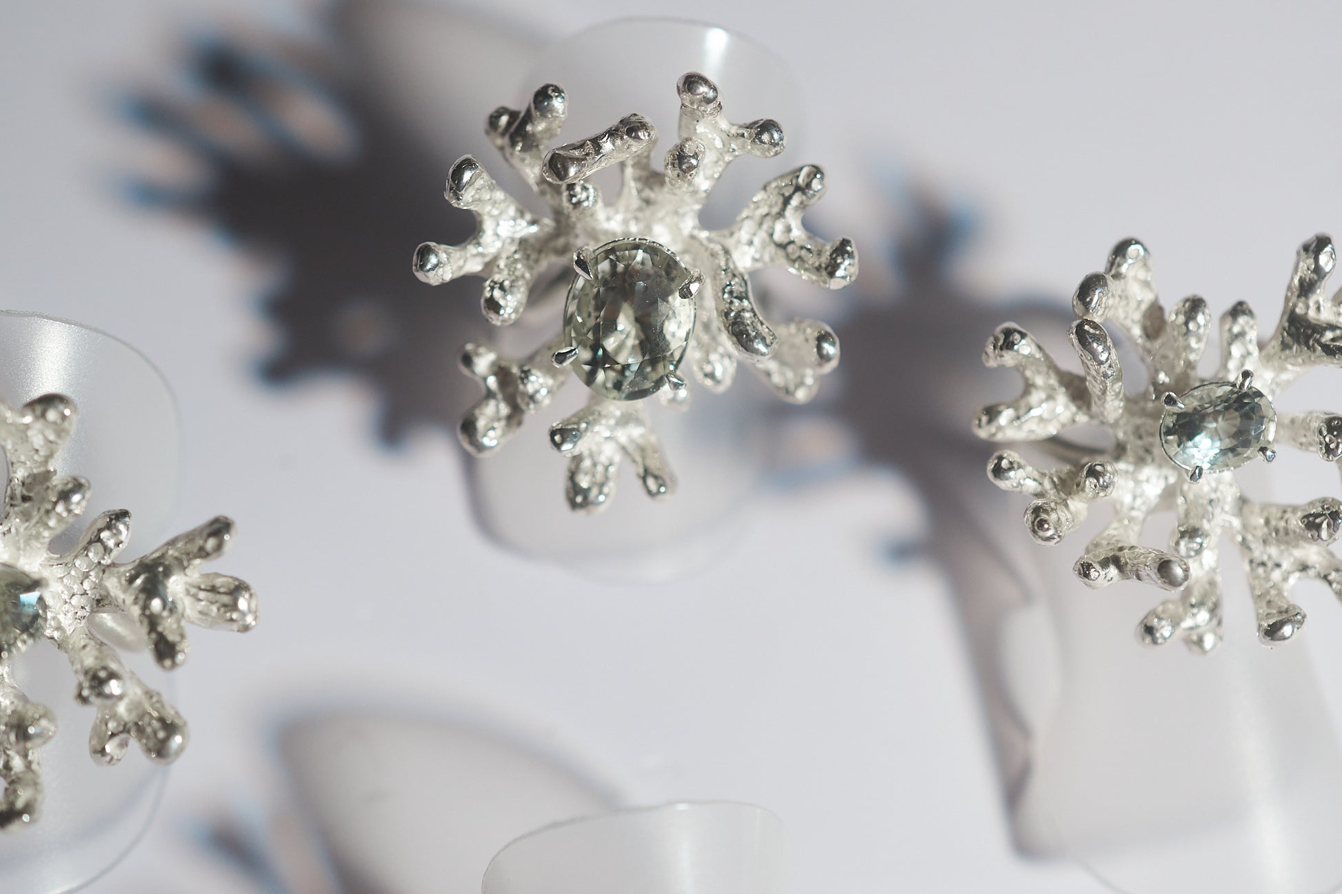 Silver Coral Ring with 11mm x 8mm green Amethyst.