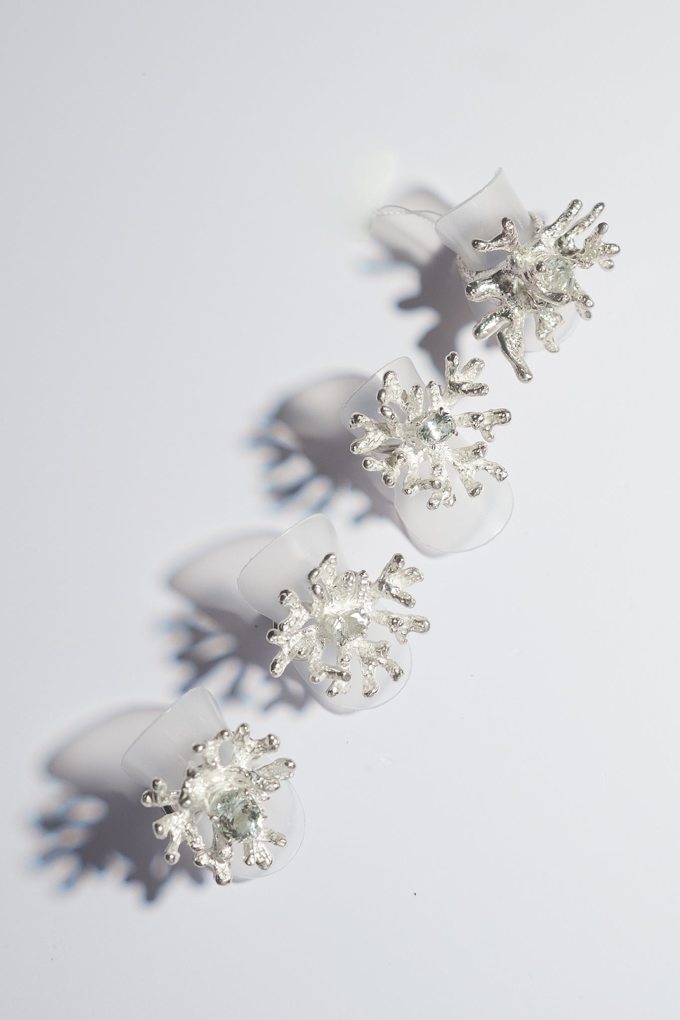 Silver Coral Ring with 6mm x 8mm green Amethyst.