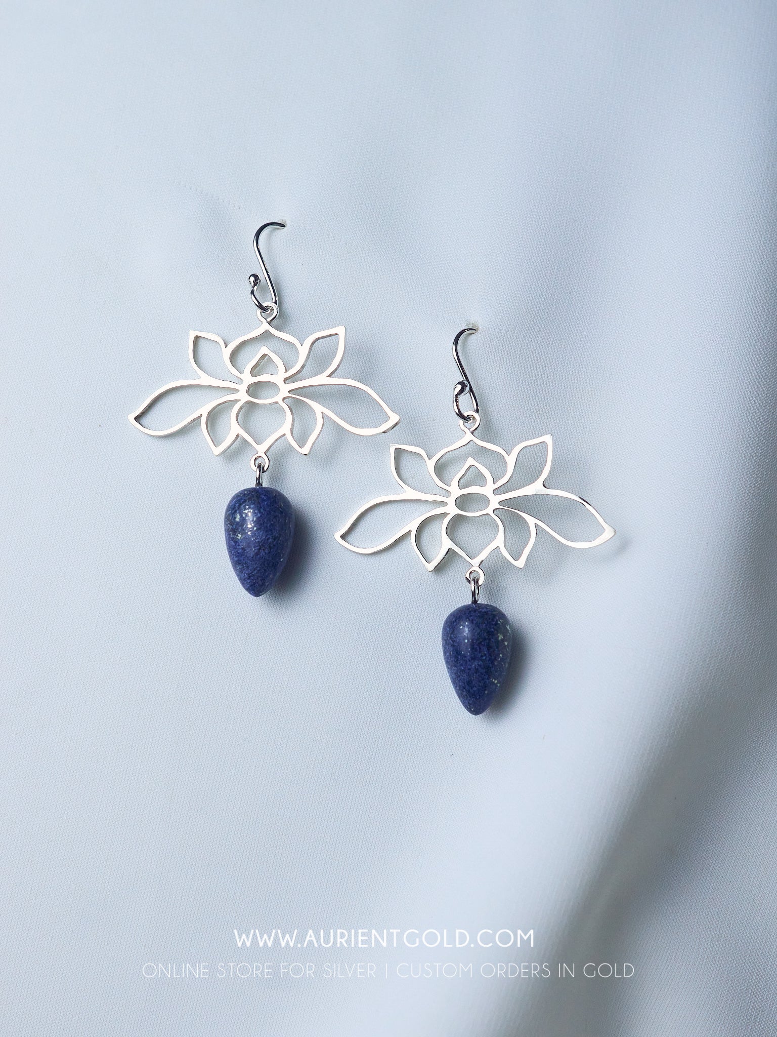 Lotus Earrings with Lapiz Lazuli Stone